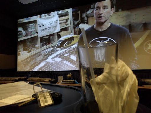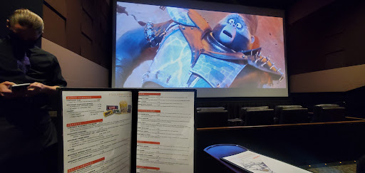 We had an awesome time! The staff was professional and friendly the second we walked through the door. The full bar directly behind the hostess stand was also cool giving it a nightclub feel. A nice way to meet up with friends before or after the movie to share a cocktail and converse without having to make it a long involved evening. The food was excellent with some surprising healthy options as well. Sitting in recliner seats why the waiter brings you a cocktail and your food, even popcorn was fantastic! You cant beat it! A classy, refreshing new spin on seeing a movie in an adult way. It was like watching a movie in my living room exceot it wasnt my living room. Also, 21 and over was so refreshing. No bratty kids kicking the seat behind me or inconsiderate people texting on their phones during the movie. Totally worth the extra money. We will totally come back soon.