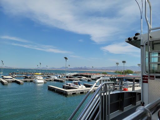 I see a lot of poor reviews for service and food for this location. However, the nearest similar establishment is over 40 miles away (on the California side). Instead of complaining, these naysayers should check out the Arizona side. They can take their boat over or use the ferry, which leaves approximately each hour. The cost is a whopping two dollars, cheaper than most city bus fairs, and is quite pleasant.