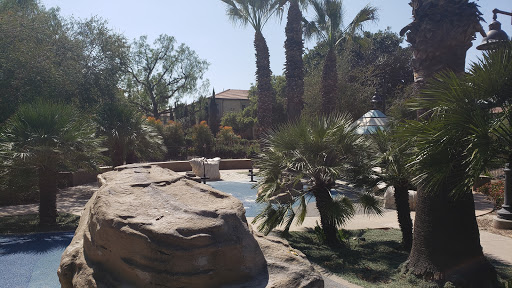 Large play area for the kids that has multiple slides and a rock formation for climbing. The sand pit has 2 kid-sized diggers. There is also a public bathroom that you can use.