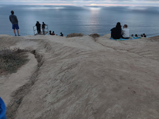 Amazing place. If you are visiting San Diego this place should definitely be on your list. Its sandwiched between Torrey pines golf course and the ocean. Parking is usually never a problem. The views are amazing, as you are standing on a 200+ foot cliff and full view of downtown La Jolla and the Torrey Pines coastline. On any given day youll see many paragliders and hang gliders soaring throughout the sky. Its a great place to just relax and read a book. There is a way down to blacks beach but its a windy path down the cliffside. PS: if you are the daring type you can go on a tandem paragliding trip here!