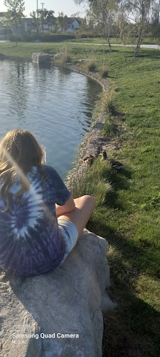 Small park...just a few benches near the pond and 1 or 2 picnic tables. Lots of ducks and geese and their poop. A little bit of lawn but most of it slopes toward the pond which dominates the park.