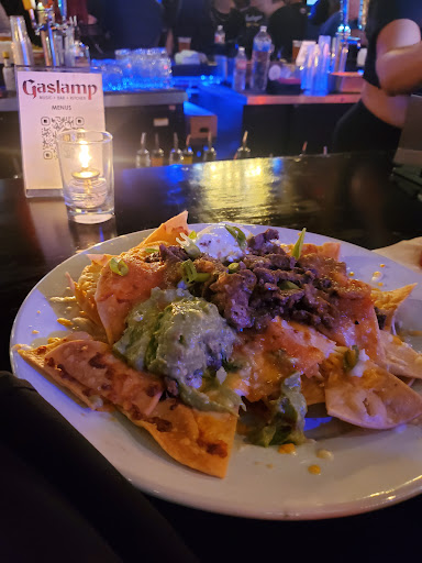 Gas, brake, dip, dip. Gas, brake, dip, dip. Tell me when to go. Tell me when to go. Where? Gaslamp! What a gas! Cowboy Thursdays! Gaslamp recently starting promoting Cowboy Thursdays, featuring live bands, a DJ playing Country music, line dancing and instruction. I was offered free passes ($5 cover) and decided to check out Gaslamp for myself. Immediately walking in, the first thing I noticed was how upscale Gaslamp is compared to my usual line dancing haunt. Im talking laser lights, smoke machine, even the restrooms are an upgrade to what Ive been accustomed to. The dance floor, where all the magic happens, is a little small, but nothing I cant get accustomed to. It just means I cant really cut loose & own the floor like I usually do ;p The dance instructor brings baby powder for dancers to scuff on the soles of their boots and/or dancing shoes for spinning, as the floor is sticky and hard to spin without it. My cohorts kindly offered me some of what they ordered off the menu. Parmesan garlic fries - You had me at parmesan & garlic. Yes, even though I was two-stepping with the ladies, I didnt mind suffering from anti-social garlic breath. Hey, it was good! Lettuce wraps (choice of chicken or tofu )- Cilantro, cabbage, water chestnut, mushrooms, green onions, organic butter & lettuce. Trio of sauces on the side were sweet soy, sweet chili & sriracha. Yummy! Adding the sweet soy, sweet chili & a few dollops of sriracha, the chicken lettuce wraps were great while taking a breather from all the dancing. Bacon cheddar slider - I found this to be rather salty. I know, know, of course its salty, because of the bacon. However, coming from a bacon lover, I still found the bacon and patty to be too salty, even for my taste. Besides Cowboy Thursdays, Gaslamp has these designated themed days- Sunday Brunch Live Comedy Wednesdays Fridays 80s Nights w/ Knyght Ryder Ive seen Knyght Ryder perform previously at the Lakewood Summer Concerts in the Park. I enjoyed their energy while belting out classic 80s music, which I hold near & dear to my heart. Special events, such as UFC, tributes & gigs by comedy headliners like Jay Mohr & Andrew Dice Clay are also held here, with some having pre-sale tickets to accommodate high demand. A good amount of seating with tables & booths. Reservations make sure you secure a good seat, otherwise bar seating is available. There are private VIP areas with couches & an outdoor patio which is being renovated with heat lamps & such. Service from the waitstaff was friendly & efficient. We were brought out pitchers of water frequently, in order to hydrate from all that sweat dripping off us onto the dance floor. Parking is complimentary & in a private lot. Shall we dance? Fun times & great memories are to be held at Gaslamp Restaurant & Bar. I came away quite impressed with my first visit of Cowboy Thursdays, and plan to be a regular dancer there whenever I can. The vibe was chill, the faces were friendly & the atmosphere just right to get my country groove on. See ya next Thursday! Highly recommend!