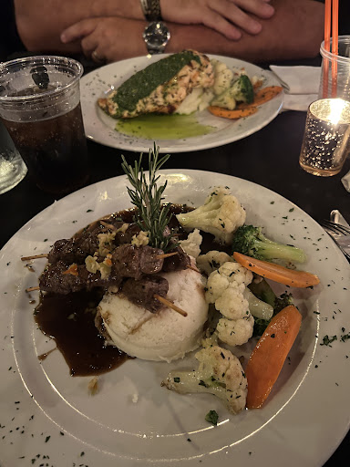 Went in for the Groupon Coupon offering 50% off your meal. Ordered the Slider Trio and a burger. Both were quite good! Their beer taps are quite limited, 4 i think? They do have a large selection of bottled beers. The menu is kind of limited, check the website. The atmosphere is the best part. the place is dimmly lit with a red glow. If you go in before 8-9 the place is pretty much empty. After that it fills up and some nights theres a cover charge. They have a large dance floor right in front of a stage. The bar is 0 shaped and there are booths and tables to sit at. I think you have to reserve booths after a certain time. Overall, Great place to spend an evening!