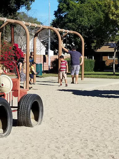 Small, shady park with a small playground. Always 3-4 homeless people sleeping there, but many more at night.