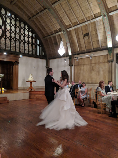 This is a great venue for a Wedding/Reception. The main dining room has a smaller area attached which allows you to seat more people, but can make it a little hard to feel cohesive just because the rooms are quite different. The bottom floor has a nice reception area for people to mingle before the reception. There is a separate room upstairs where the bride can relax or get ready.