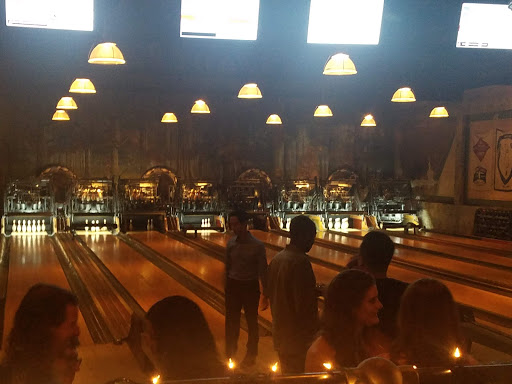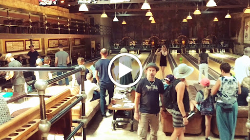 Fantastic atmosphere. It is set in a warehouse with a really old fashion bowling system and two bars. Amazing lighting and ambiance. The upstairs area feels like you stepped back into and old noir film. The cocktails are really good and the pizza is top notch. Even if you dont want to bowl it is worth coming here for the food and drinks. The typically only let six people per Lane but if you ask yiu can do more. Excellent spot for birthdays, you wont be disappointed.