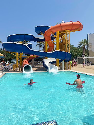 Great lifeguard system made me feel very safe letting my two boys swim. I was especially impressed with the lifeguards in the pool at the bottom of the slides. Bring your own food. Plenty of sun screen, hats, and sun glasses. Heavily used but still fun.