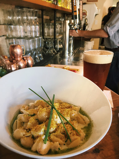 Its very new and experiencing a shake-down. It opened on 10/3. They have specialty cocktails, specialty on tap beers and appetizers, salads and hearty entrees. The chef also works with soldiers daughter and the late mineral. We had the house cured gravlax. Amazing and six lovely portions. Nice pickled onions and house sour cream. Tasty! My issue was with the drinks. We ordered the specialty Bloody Mary and a vodka martini with a lemon twist. The Bloody Mary came in a half liter wine carafe garnished with a slice of glazed bacon, bacon salt, pickled corn and cauliflower. The presentation was odd because you had no idea how to drink it. One busser handed us a beer glass and straws. Straws were too short to access the yummies on the bottom. We dumped the drink into the other glass and removed the accents to a plate. Very tasty but we were loosing some of the yummies on the bottom. Rinsed out the carafe twice with soda to get the remainders. All in all very tasty but weird to consume. My Martini came first in a dof with a slice of lime and rocks. Wrong. I requested a replacement. It came in a martini glass with a lemon wedge and a pick with three olives. Wrong again! I talked to the server and explained vodka, shaken and garnished with lemon twists. After she consulted with several other people I finally got a decent martini. Sad! The owner did comp me the martini. The owners are very nice and trying hard. I will return but hope they get the drinks together.