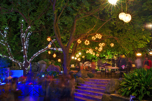 Amazing ambiance. This place is truly gorgeous. The shady sunken dance floor, the gazebo, the little nooks all over for sitting in smaller groups, the waterfall, everything. The staff was fantastic; extremely friendly and courteous. What an amazing place for a wedding. The mix of nature, design, and spaces really make this place something to behold.