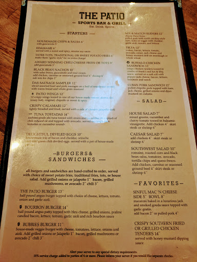 My first few visits to The Patio were all after 10pm on Fridays/Saturdays. This is the best place in Palo Alto to go if youre in the mood for some good music, dancing, and drinks. The space is huge and theres a quieter outdoor area that provides a refreshing break from the dance floor. The crowd is diverse so theres definitely something for everyone. I love how the DJ never fails to play every genre and hits everything from oldies to the freshest sounds. It was only months after my first few visits I realized The Patio was also a restaurant and sports bar, open for brunch/lunch and dinner daily. The food is more than your average "pub food"-- its incredibly tasty and the menu is always evolving. They have a great draft/bottled beer selection and an impressive wine list to boot. The space is unbeatable, theres really no place better to be than sitting on the patio on a nice day enjoying a brew and bite. Top points: - dog friendly patio - awesome happy hour specials 4-7pm - huge menu with apps on special during HH - perfect place to enjoy sunshine/fresh air and a game on the 80" flatscreen - they book private events regularly - friendly staff... the kind who will remember your name after a few visits - karoke & trivia nights weekly