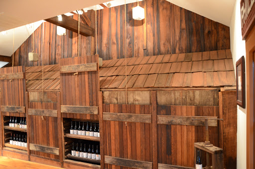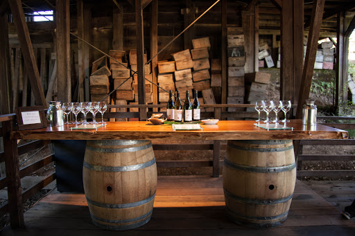Surrounded by apple trees, this tasting room is housed within a well restored barn. The tasting room is outdoors, but undercover, and has a somewhat magical feel. Maybe its the deep brown slabs of wood, the hundreds of old apple picking crates, or the oversized melancholic trees.