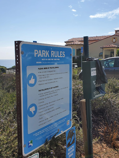 Beautiful Place but full of thugs. Our car got burglarized and so is the car near by. Police is aware of this situation and local authorities are not doing anything about it. There are no security cameras on premises or security guard at all. All multimillion dollar villas have private security around their properties. Basically it is an expensive location right next to a San Pablo which is a nearby ghetto town. Beautiful rocky beach hike and view was destroyed by this unpleasant burglary experience. My business bag with a laptop and ipad is gone forever so are the belongings of my son and my wifes stuff. We were passing through from San Francisco Bay Area to Lego Land Carlsbad for our sons 8th birthday. He is still talking about - and that was in April. Make sure that your car is empty. Locals are aware of this problem. A lady who walks her dog there every day informed us that it is happening every day.