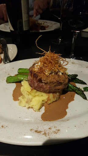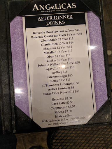 Angelicas is a top-notch performance venue and restaurant. I primarily come for the jazz shows, but have seen others as well (comedy, etc.). Angelicas is a throw-back to the supper club, where theres live, on-stage entertainment while you dine (not a 3-piece combo playing background music like you get now). Their shows feature some of the biggest artists in the Bay Area, as well as up-and-comers that you may be hearing more about down the road. Peter, the owner, is a great supporter of live music, and includes top-quality high-school combos in his rotation, helping keep jazz alive for younger generations. Besides being a great music venue, the food is great. It doesnt have to be, but it is. My usual choice is the cauliflower fritters, a creative and satisfying dish, but tonight I ventured out and tried the pork medallions, served with carrots, brussels sprouts and an amazingly delicate and rich potato au gratin. It was absolutely delicious, and Id order it again. Its not an inexpensive evening (buy your tickets online in advance to save a lot of money), but youre paying for the entertainment as well as the food, so its worth it. Ive been here a number of times and never left disappointed.