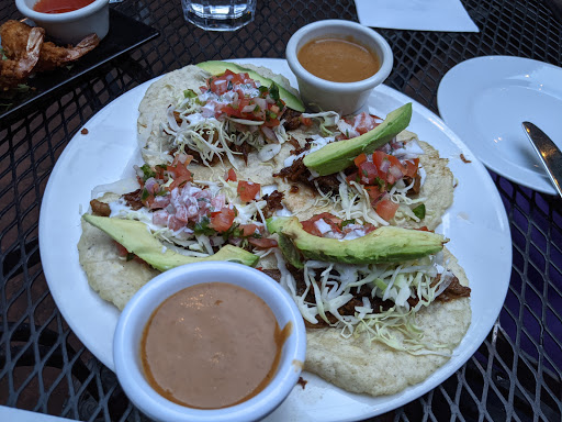 Angelicas Bistro back patio has a creative atmosphere that makes very best use of outdoor space that would otherwise be a back alley. You eat surrounded by a water fountain themed courtyard with lots of plants and statues, and fountains. I had the pineapple ham and a wilted lettuce for appetizer and a hamburger. I had one soft drink. The pineapple ham and wilted lettuce were good, the burger no better than most any local hamburger joint. It was about $43 out the door. There are several indoor dining areas that I did not visit; they also host popular live music. The main stage features a state of art sound system and basic stage lighting.