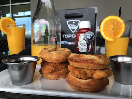 Ten of us went on a Sunday about 11:30AM. Waited in line for about 30 minutes to purchase the membership card. Then off to the concierge to discover a one hour wait for one stall and 1.5 hours for two stalls next to each other. We went into the restaurant section and waited for 1.5 hours to get the food which by that time we were on our way to the golf stalls. Food was ok and cold. I had the mediocre waffle/fried chicken sliders and steak nachos which both would have been better if at least warm. The Point of Sale system at the stalls are confusing to activate and renew. Im a single digit handicap and the mens clubs were "regular" graphite shafts. Difficult to control trajectory/distance/accuracy. The balls are "dead" and travel about 10-20 yards shorter than normal balls. We got 2 rounds of 20 shots each in about 2.5 hours. After about 5 hours, was ready to call it a day. Still pretty fun but definitely would bring my own clubs if I were to ever come back for a "next time." The membership desk was nice, the concierge desk not so nice. The food server was slow/terrible. This chain makes so much money, they should ensure better employees/service. I rounded up 2.5 stars to 3 in this rating.