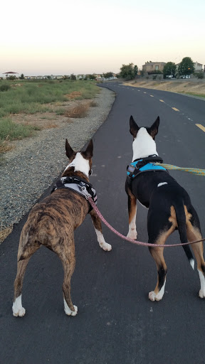 Well kept grassy park with tables, benches, water fountain, and room for dogs to play. There is a small dog park and a large dog park.