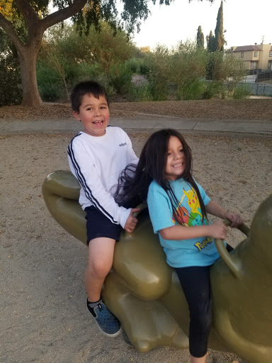 Nice park to bring toddlers. The dinosaur statues give them plenty to climb on.