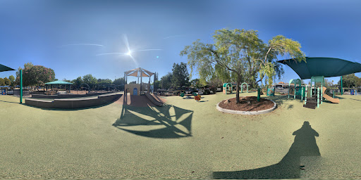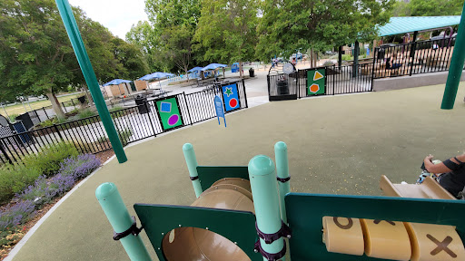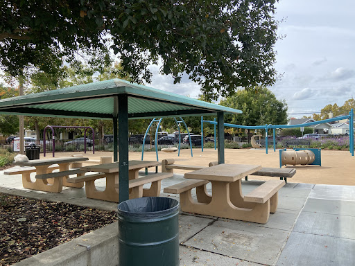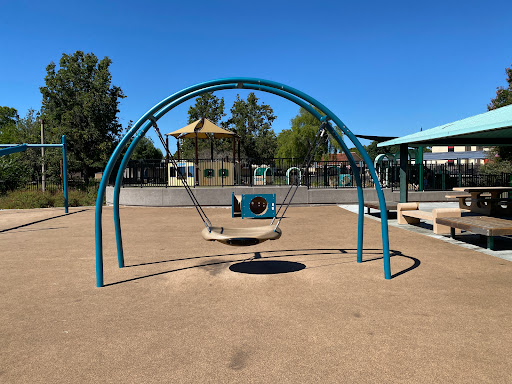 This is my go-to park for my 18 month old toddler. The toddler playground is completely enclosed, so theres no worrying about her wandering over to the big kids area. The play structure is low to the ground, with tanbark on one side and the soft squishy playground surface on the other, without any places where she could fall and hurt herself. Theres also a sandbox, and two baby swings. There are a few small trees inside the play area to provide shade, as well as a gazebo with benches underneath. This park has a water feature, however there is signage explaining that it will not be in use due to the drought. Overall, its a pretty neighborhood park where you can feel confident in letting your child run around and burn off some of that toddler energy.