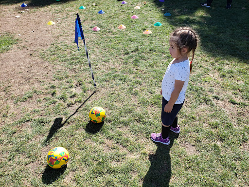 Playground equipment is nice. Good play structures, fun little water features for getting your hands dirty. Fenced in area for toddlers is great. The whole thing could use more shade of course, like most parks in the area. The big problem with this park is the field is full of dog poop. My kid has soccer classes here, and my toddler and husband have gotten covered in dog crap on a few occasions. Other times, weve just been fortunate to see it and step around it, but, seriously, the dog poop makes this park a no. Its... a lot of dog poop.
