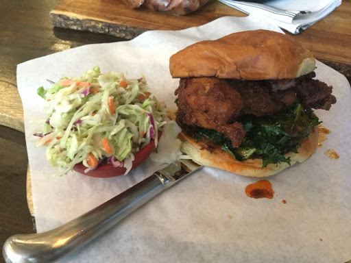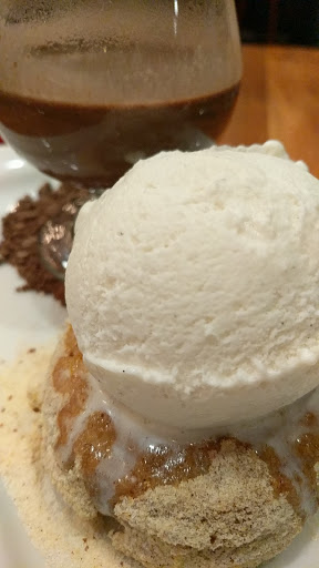 Sitting on the creekside patio gives you a wonderful view while you have drinks and eat dinner. The best part of the meal were the drinks and dessert. My SO had a flight of beer and loved the oatmeal stout (excellent, on style), the Caliweisse (good, off style), and the Effeil hoppy (he wanted a growler of it) not so much the east coast IPA (not a good version according to him). I had the Berry Smash Punch which was not as sweet as I was expecting and loved it. I probably could have drunk the entire 4 person portion by myself although I then wouldnt have been able to walk. The lemon juice helps to cut the sweetness of the berries and makes for a refreshing berry lemonade drink which is a little too easy to drink. Even the SO liked it. For dinner, he had the pork tacos and I had their version of a BBQ burger ordered medium rare (they asked!). He loved the tacos and said the beans that came on the side were delicious. I had a side salad with my burger and found the dressing to be a little hard on the palate, too much vinegar or salt. I cut the burger in half expecting a beautiful medium rare and it was well done. I dont mind eating burger well done since most places dont ask how you want it, but if you are a place that asks how you want your burger cooked you need to make sure it is cooked the way it is ordered. Other than that, it wasnt spectacular. It was good and maybe I was a little disappointed in it not being cooked to order that I didnt enjoy it as much. Dessert made up for it! I quite enjoyed the peach shortcake which is the really peaches on a biscuit with vanilla gelato and an amazing honey. Just know the biscuits arent sweet - this isnt a standard shortcake. But they dont need to be because the honey and peaches are sweet. If you like hops youll love this honey - the SO even tried to figure out which hop they may have infused into it so that he could try and make it at home. It was a lovely end to dinner and we shared a glass of their in-house whiskey. If you like bourbon, youll enjoy their version. I thought it would make great cocktails and we tried to order a bottle but they wont sell it. They also wont sell growlers of their beer at this location but you can get them at their other location. Service was excellent but it was a slow Monday night. There were a lot of families out with their children so you know it is a family friendly restaurant.