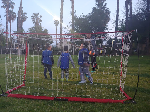Has 2 Basketball courts that provide for a hispanic basketball league, Soccer Games on the large field on the weekends, A playground for the kids, also a handball court, finding parking is no issue. Just dont use the bathrooms. Next to a catholic church and the national guard center.