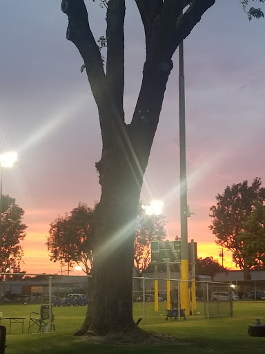 Very clean, the grass is well taken care, the four corners are neat no graffiti. Not so much activity happening, enough parking for family events. Benches are under shady area, very visible, five baseball diamond fields in a small decent park to play with kids or teams. The area is quiet, no signs of vandalism. Between residential homes, next to a elementary school and on the other side couple business places towards the crossing intersection. Ambience is nice, I like rhis place for my kids and our pets.