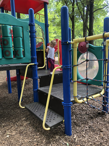 Absolutely wonderful park!! Needed a place for toddler to stretch her legs on long drive, and this was epic- no less than seven different large playground set pieces for all different ages, including one with a variety of chimes and mallets to play them. Handicapped accessible swings and equipment too. Bathrooms had infant changing tables, but were a bit stinky and had large flies. There were volleyball & tennis courts, picnic tables, grills, and tons of shade from beautiful tall trees towering over all of it. Such a lovely place will definitely be one of our stops anytime we are on 80.