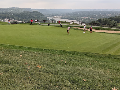 Majestic drive into the club going up a step hill. Driving range in view on your right. Love driving under the club house. Massive stone walls and classic 1920s design. First few holes offer a great view of the river and bridges on north side of Pittsburgh. Greens are fast and have lots of contour to them, but very puttable. Inside the club house is classic design and number of rooms for food and drink.