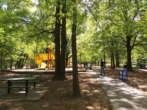 Lots of athletic facilities and largely shaded with trees. They have a great spray ground with long hours 7 days a week but it is often out of order this year. When working our small kids love it and can spend hours there.