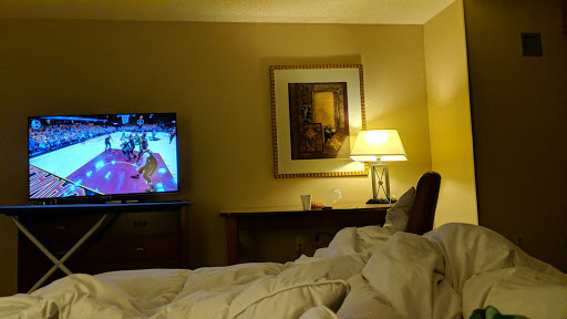 Not at all happy with our experience which lasted less than 12 hours. It started at the front desk during check-in when the manager(?) (or other front desk clerk) interrupted our check-in to tell the clerk waiting on us that she shouldnt be using new pieces of paper for taking notes, that she should use paper from the garbage. She continued with more berating nonsense right in front of us...all during our check-in!! She flustered the clerk while simultaneously making us uncomfortable. It was a conversation she should have had with the other clerk when there werent customers around. At the absurd price of $10 for WiFi (even the cheapest of hotels offer free WiFi) we opted instead to watch television, which was a bust because most of the channels were grainy and/or completely cut out while watching. We decided instead to go outside which is actually the highlight of the hotel with its comfy sitting area and ambiance. The hotel is pretty soundproof so going to bed early was not a problem. However, we wake up after 5am to a bill with a $52.00 charge on it for the "Cardinal Lounge"!! I had never even stepped foot in that place!!! I promptly went to the front desk which was absent of any employees for about 20 minutes. When someone was finally available, I explained that there was a mistake & that we were never in the lounge. The receptionist proceeds to tell me that there wasnt a ticket showing but if there was, then she could figure it out and take it off. That was too suspicious; a charge for that much but no receipt to show what it was and who signed for it?? I was adamant about the fact that we were never there and told her it needed to come off of my bill. She was reluctant and I was already thinking of all the ways they could prove we werent there - check the computers in the lounge to find the ticket, check the security cameras, ask staff - anything except shrugging your shoulders and saying theres no ticket!! Finally, after getting even more adamant, she did print me a new receipt sans the charge. However, when I checked my bank account 2 days later, there was a pending charge for my bill with that amount still on it. It did somehow work itself out a few days later without me having to call, though. Needless to say, it was a stressful experience. The entire situation was very shady, especially since there was no ticket in their system for this phantom charge! Weve stayed 2 years in a row on our vacation travels because its so close to the airport but I highly, highly doubt it will happen next year.