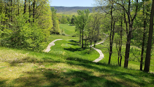 Beautiful course in the heart of the Shenandoah Valley, about 10 miles roughly east of the center of Harrisonburg, Virginia. I played it recently, in late July 2014. The course was in wonderful shape, and the views are magnificent, and some of the holes are very demanding. Which is OK with me because I am a single digit handicapper. But the design has more than a few issues. On quite a few holes, the cart path is only a few yards off the fairway, and on the other side are ravines or sharp dropoff to a rocky creek. Automatic lost ball if you even just reach the cart path. Because the ball will roll onto the cart path and then into huge trouble. Some examples: anywhere left of the first fairway. Sharp dropff anywhere left of the cart path into a very rocky creek bed. Left of the 2nd hole, cart path on left, and tee shot cannot hit cart path or the ball will very likely bounce into extremely deep and thick rough. 3rd is OK, but the area around the green should be a bit larger. No bailout that I saw. 4th is OK. 5th is sharply uphill tee shot to just short of a deep creek, then you cannot go right on the 2nd shot. Cart path too close to big trouble again. 6th is OK, just subtract two clubs for your approach shot (STEEPLY downhill). 7th is an extremely tough par 3 in which the green sits on top of a very steep hill. Dont be more than a few feet short of the green. 8th and 9th are good par 4s, as is 10th. 11th is an extreme uphill par 5 with the same problem as the 2nd, although it is even more pronounced. Cart path very close to the fairway, with OB immediately left of the cart path. Anyway, you get the idea. Some of the other holes on the back 9 are truly beautiful.