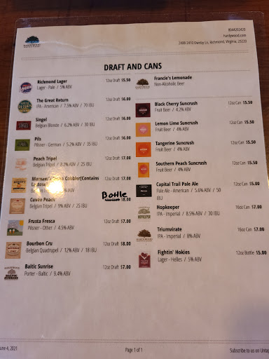 Best place to grab a brew. I appreciate that they offer a Pilsner and a Cream Ale, two incredibly drinkable beers. You dont feel like you just drank a meal when drinking them. The problem that most micro-breweries have is that theyre so hell bent on making IPAs, probably because it sells, Hardywood does a great job of diversifying their beer portfolio so everyone can find something they love. Hardywood always has interesting bands playing and support the local music community really well. In my opinion, Hardywood has done a fantastic job maintaining a strong brand identity without sacrificing the quality of their beer; GREAT JOB! All my friends that visit Richmond, I take them to Hardywood. Its quickly becoming a Richmond staple.